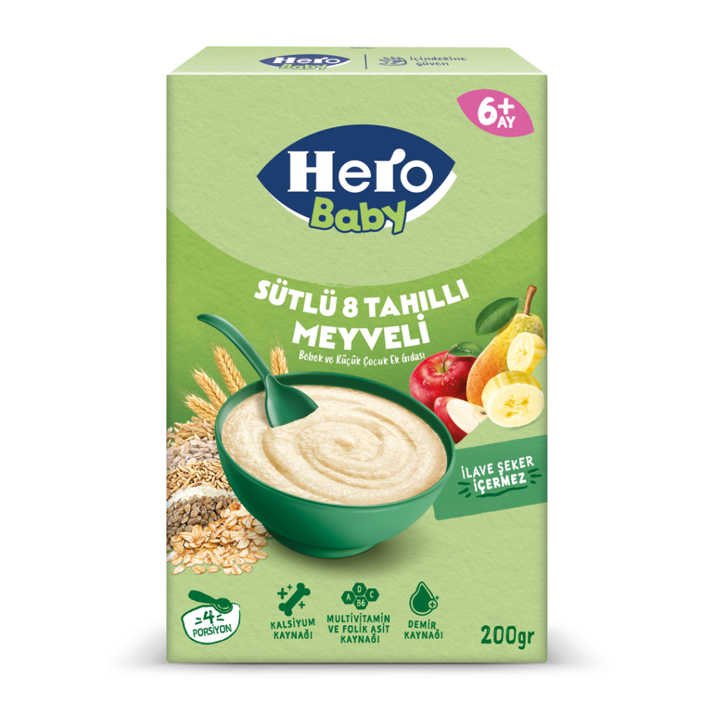 Hero Baby Sütlü 8 Tahıllı Meyveli Kaşık Mama 200 gr